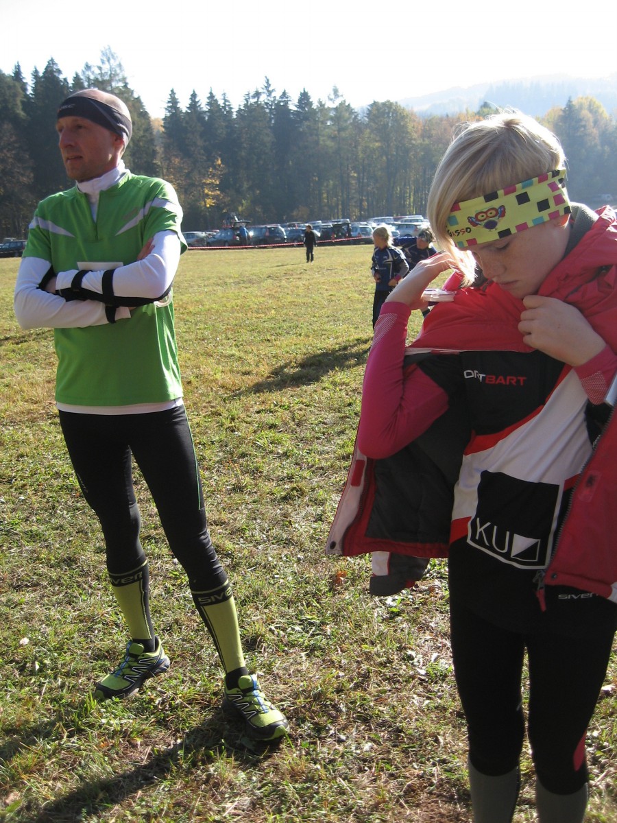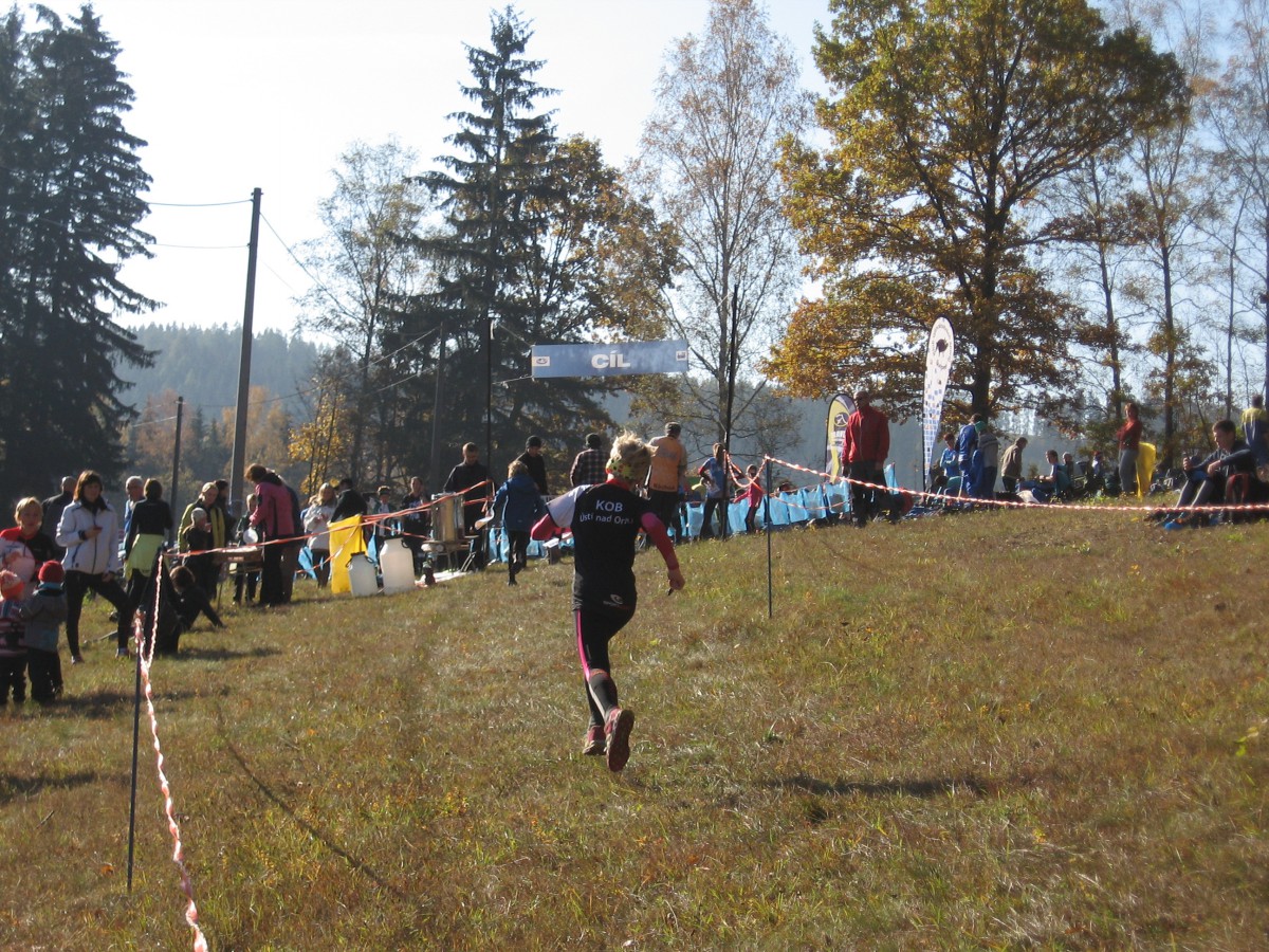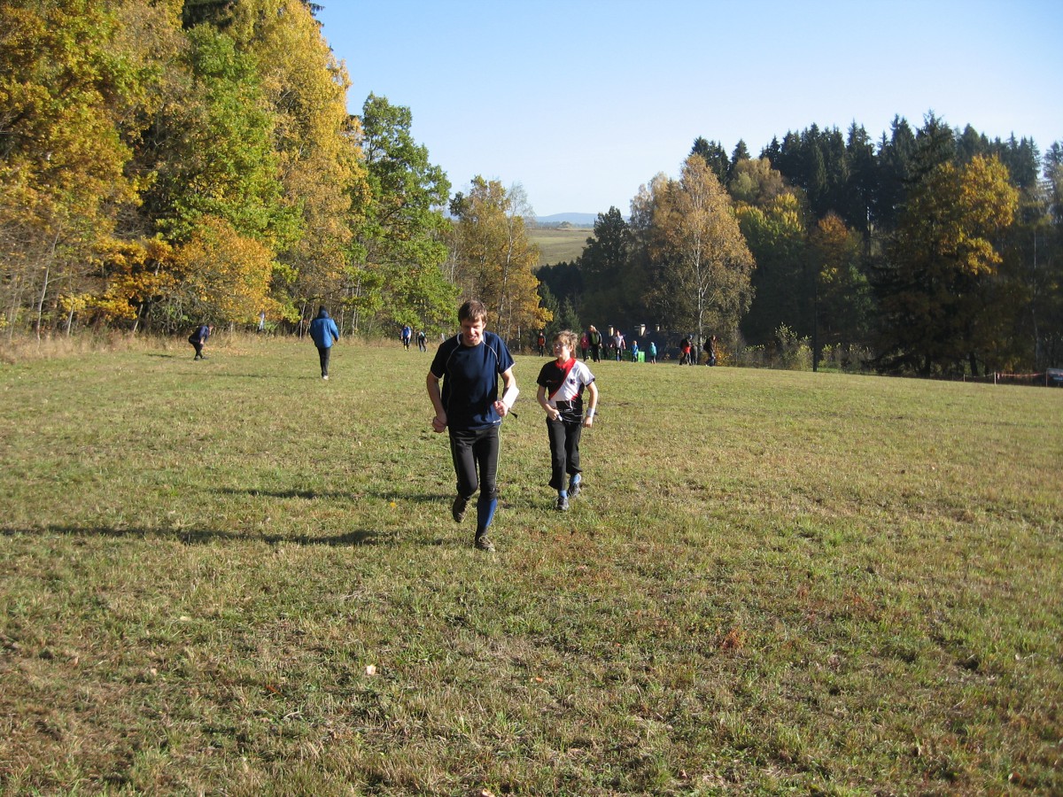 Dorazili jsme do Rudníku v Podkrkonoší. Všude mlha a strašná zima. Naštěstí se potom udělalo hezky a závod tak proběhl za krásného podzimního počasí. Jednalo se o zkrácenou trať s dobře průběžným lesem a velkým množstvím prohlubní a jam. Co se výsledků týče, tak bych určitě měla vyzdvihnout Terku, která se umístila na krásném 10. místě v D12C, dále pak Jonáše, ten obsadil 4. místo v H14C, a pak samozřejmě taky Kamila, jenž si v H35C vyběhl také 4. místo (je vidět, že se mu ve veteránské kategorii líbí). A koho bychom měli naopak drobně pokárat? Tak nejprve Tomáše, který doběhl ke kontrole, ale neoznačil si ji, takže byl disk. A ještě Dádu, ten závod vzdal. Kamil neměl moc velkou radost z Viki a vytýkal jí, že nechodí na tréninky a nakonec důrazně dodal, že by s tím rychle měla začít něco dělat. Já jsem pak raději předsedovi svůj výsledek nesdělovala, abych ho ještě více nestresovala. Myslím, že po tomhle ponaučení už Viki začne více trénovat. Opět se dařilo našemu novému členovi Honzovi, který skončil 3. (H14D), Ondra doběhl 7. (H12D), Sára 19. (D10N), Viki 11. (D10C), Markéta 9. (D16C), Květa 30. (D35D) a David skončil 17. (H35D). Kompletní výsledky jsou zde.